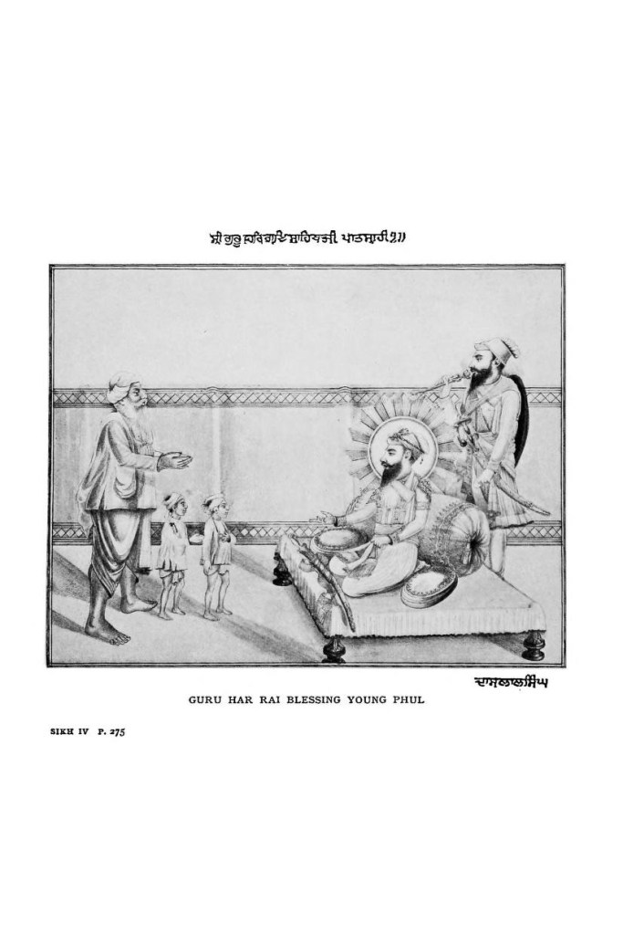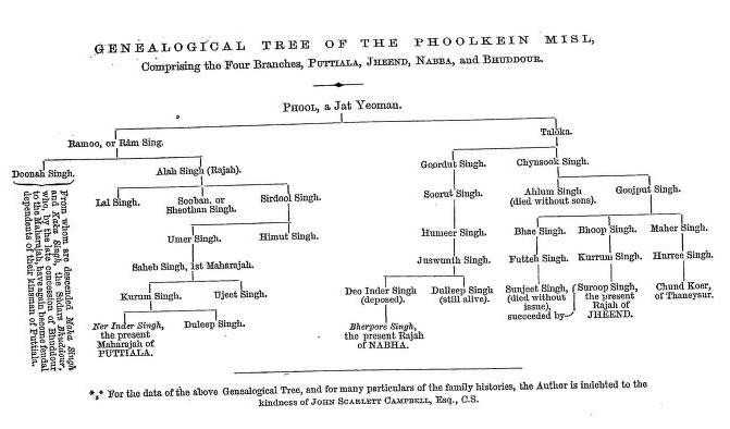 Phul had seven sons. His eldest, Tilok Singh, became the ancestor of the princely states of Nabha and Jind, while his second son, Ram Singh, was the forefather of the rulers of Patiala.